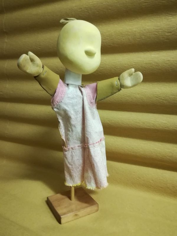 Kesztyűs báb prototípusa. Készítő: Lellei Pál. Anyag: textil, papír, fa
